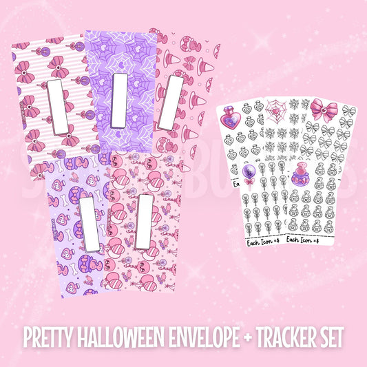 Pretty Halloween Cash Stuffing Set of 5 A6 Envelopes & Trackers