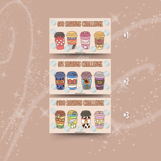 Magical Cartoon Coffee Scratch & Save Cash Savings Challenge A6 Laminated w/ Envelope Add on