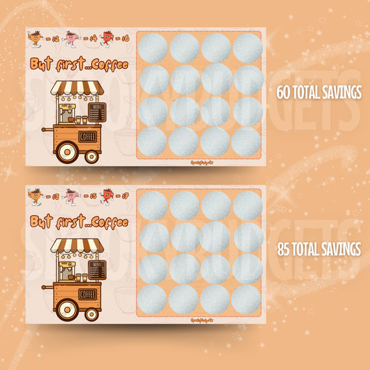 But First Coffee Scratch & Save Cash Savings Challenge A6 A5 Laminated