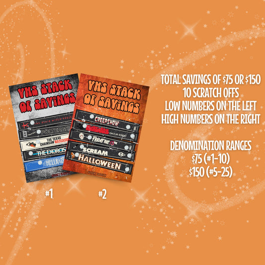 Horror VHS Stack of Savings Scratch Off Challenge A5 5x7