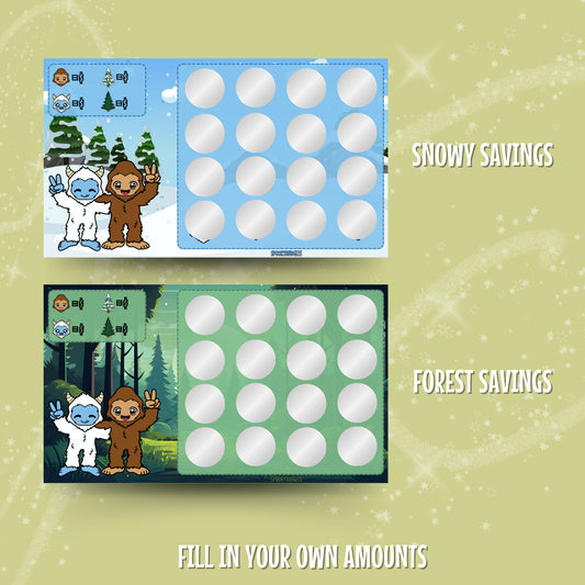 Sasquatch Buddies Scratch & Save Cash Savings Challenge A6 A5 Choose Your Own Amount